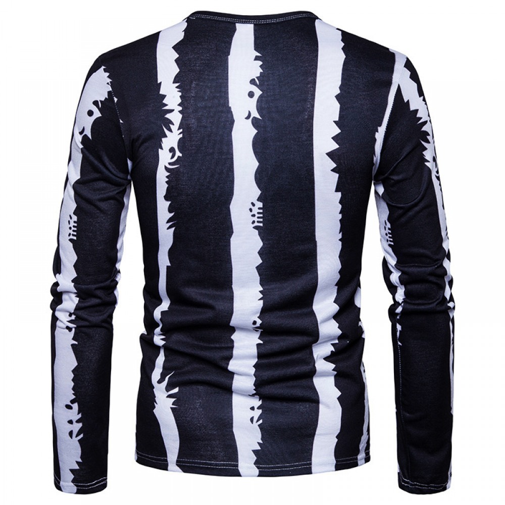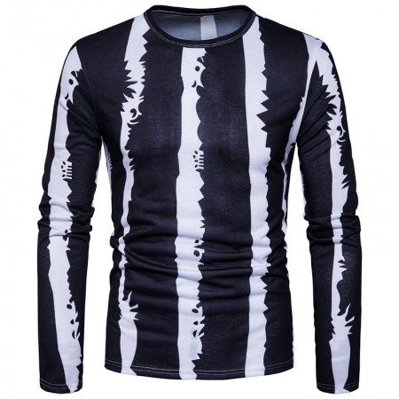 New Men's Personality Halloween Skull Print Round Neck 3D Long Sleeve T-Shirt
