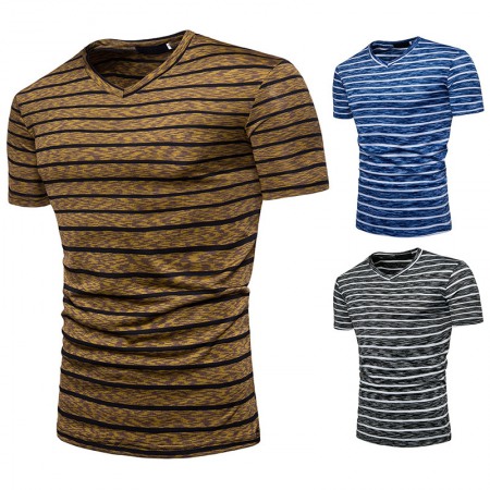 New Men's Striped Stretch Frame Plus Size Short-Sleeved T-Shirt