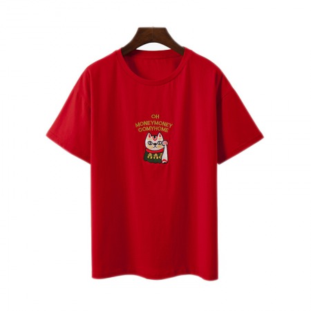 New Plus Size Women's Summer Dress Fat Extra-Large Size Womens Slimming Lucky Cat Short-Sleeved T-Shirt