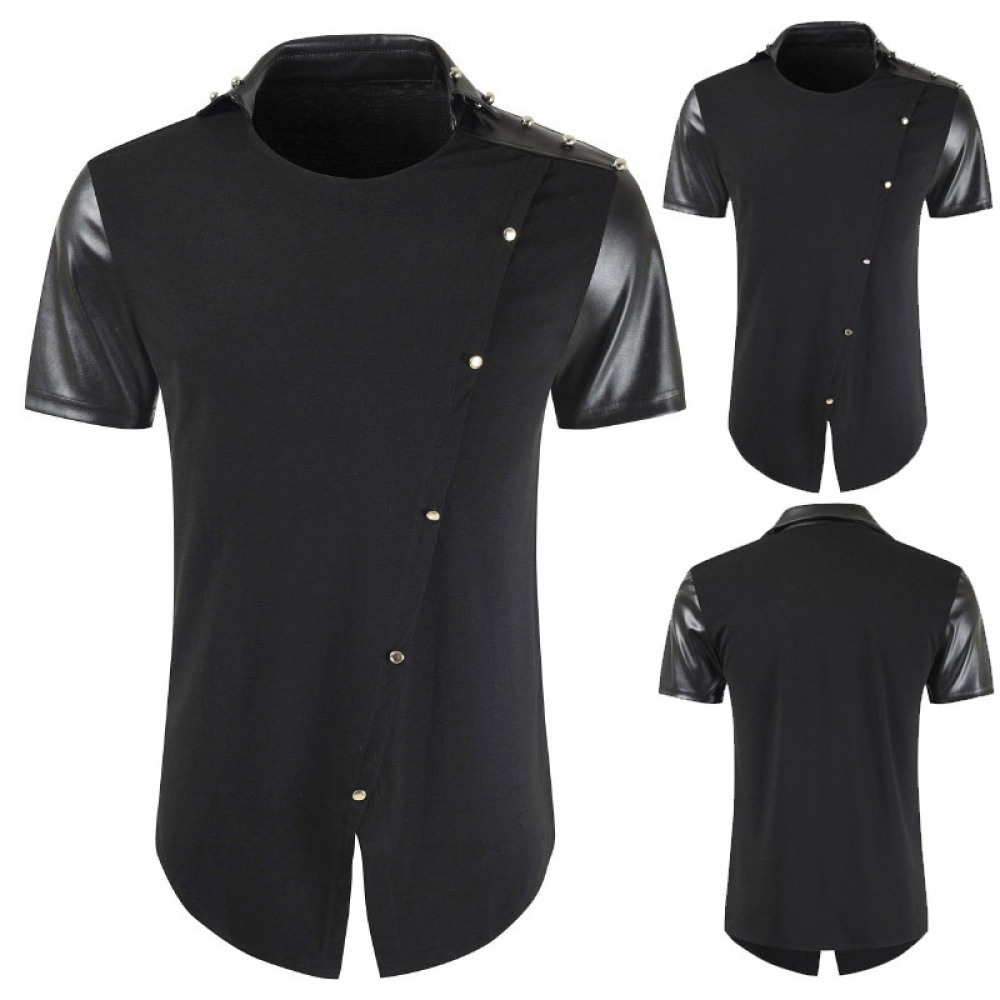Fashion Large Size Leather T-Shirt Irregular Short Sleeves