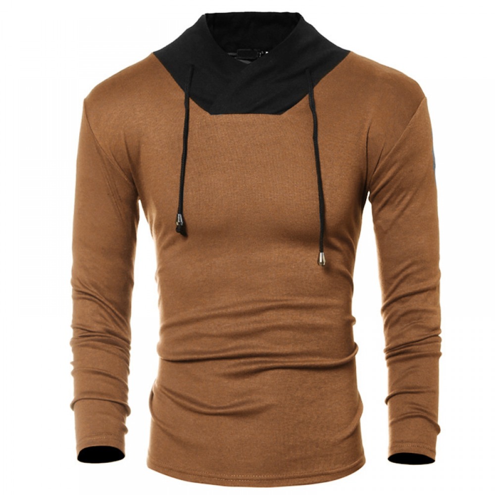 New Long-Sleeved T-Shirt Men's Casual Pile Collar Hit Color Slim Bottoming Shirt