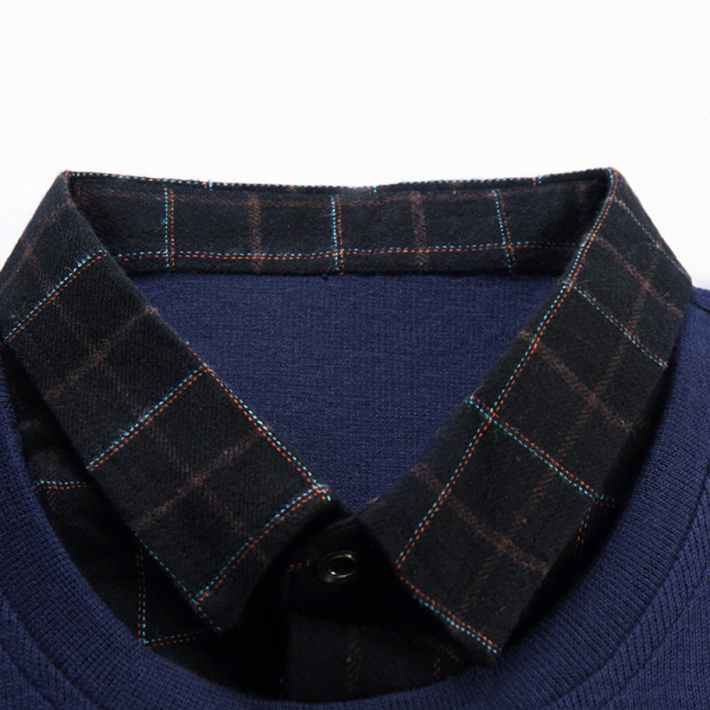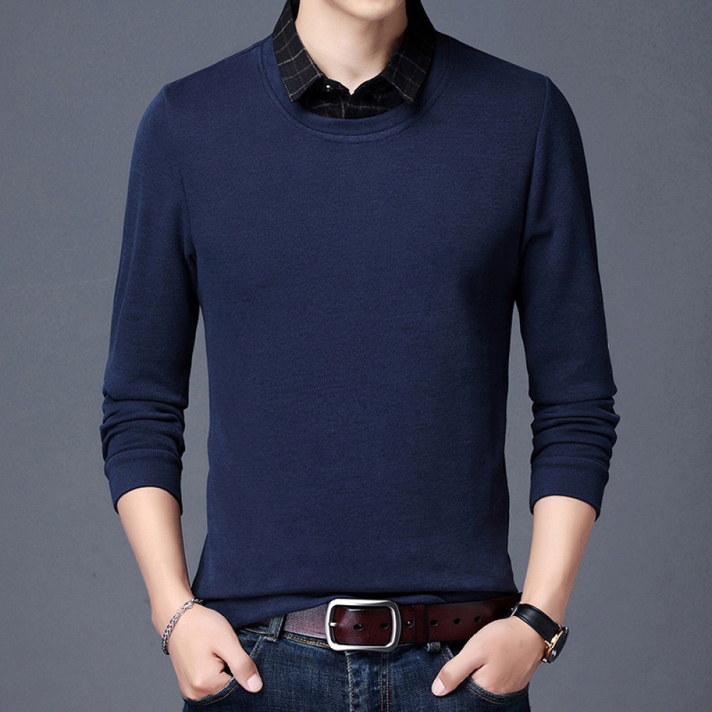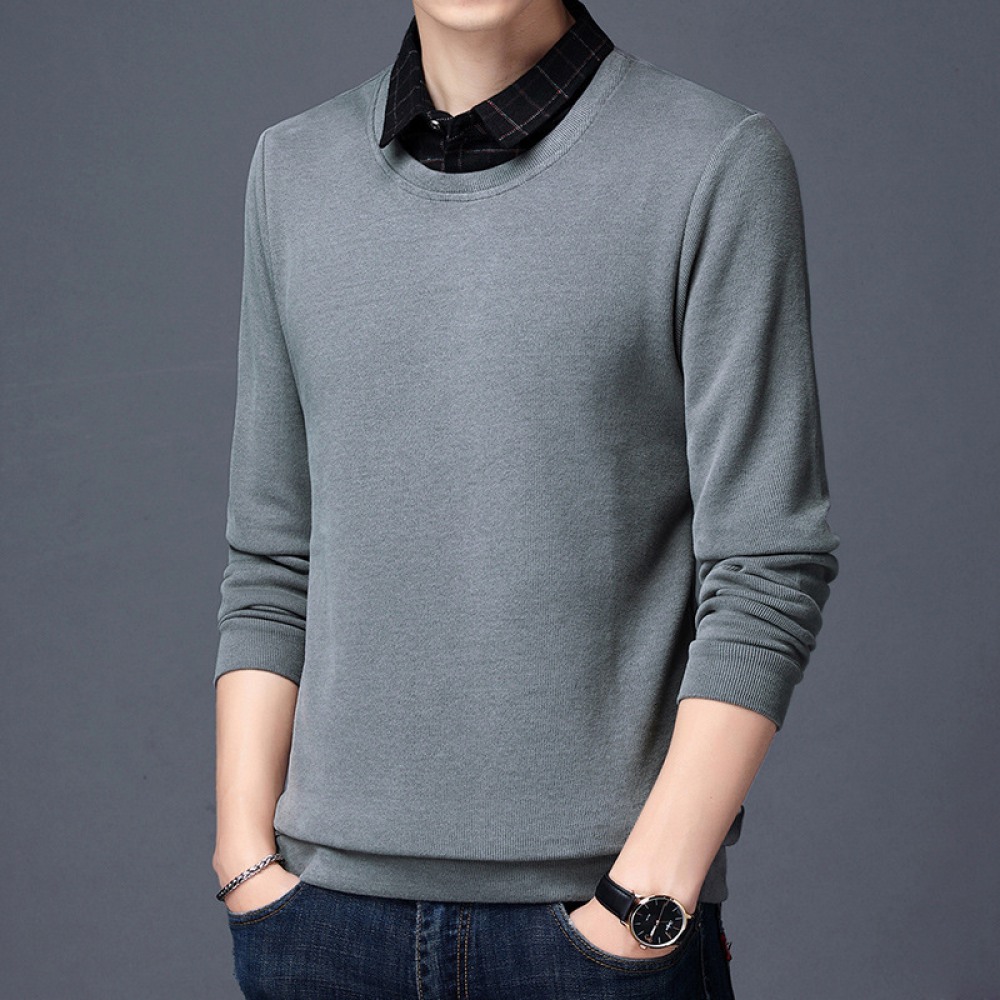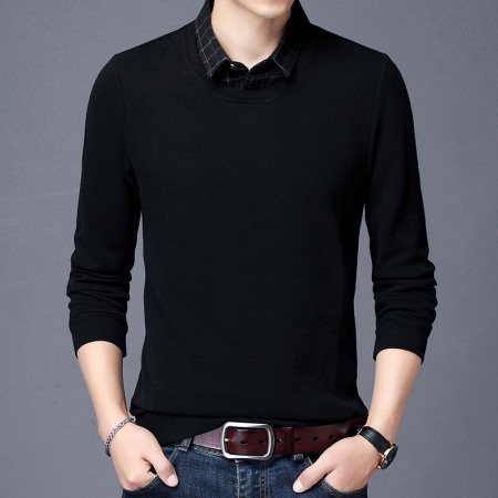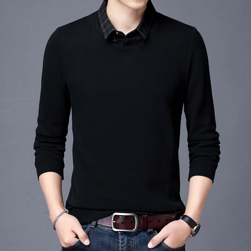 New Men's Long-Sleeved T-Shirt Slim Collar Solid Color Shirt