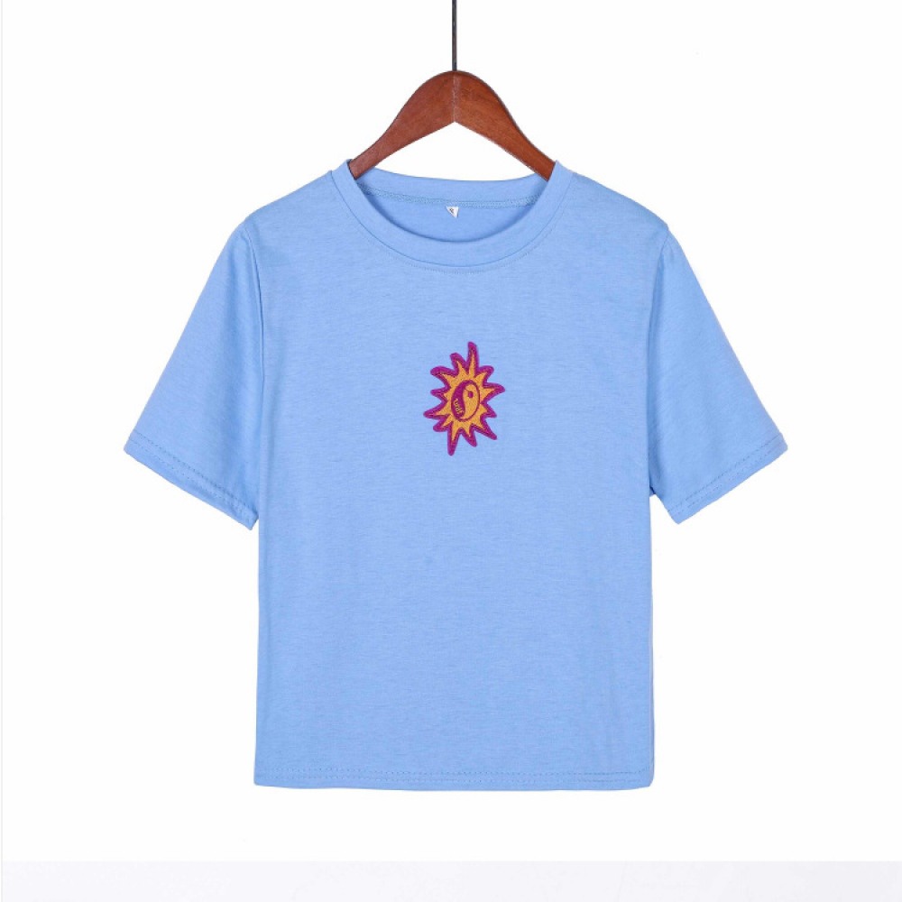 Sun Embroidered Cropped T-Shirt